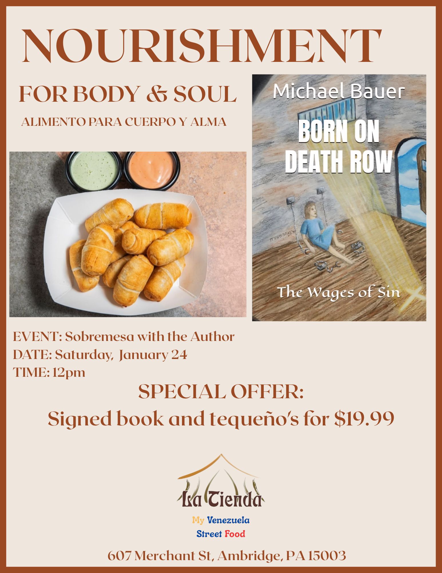 Join us to share the newly published "Born on Death Row" and a plate of tequenos