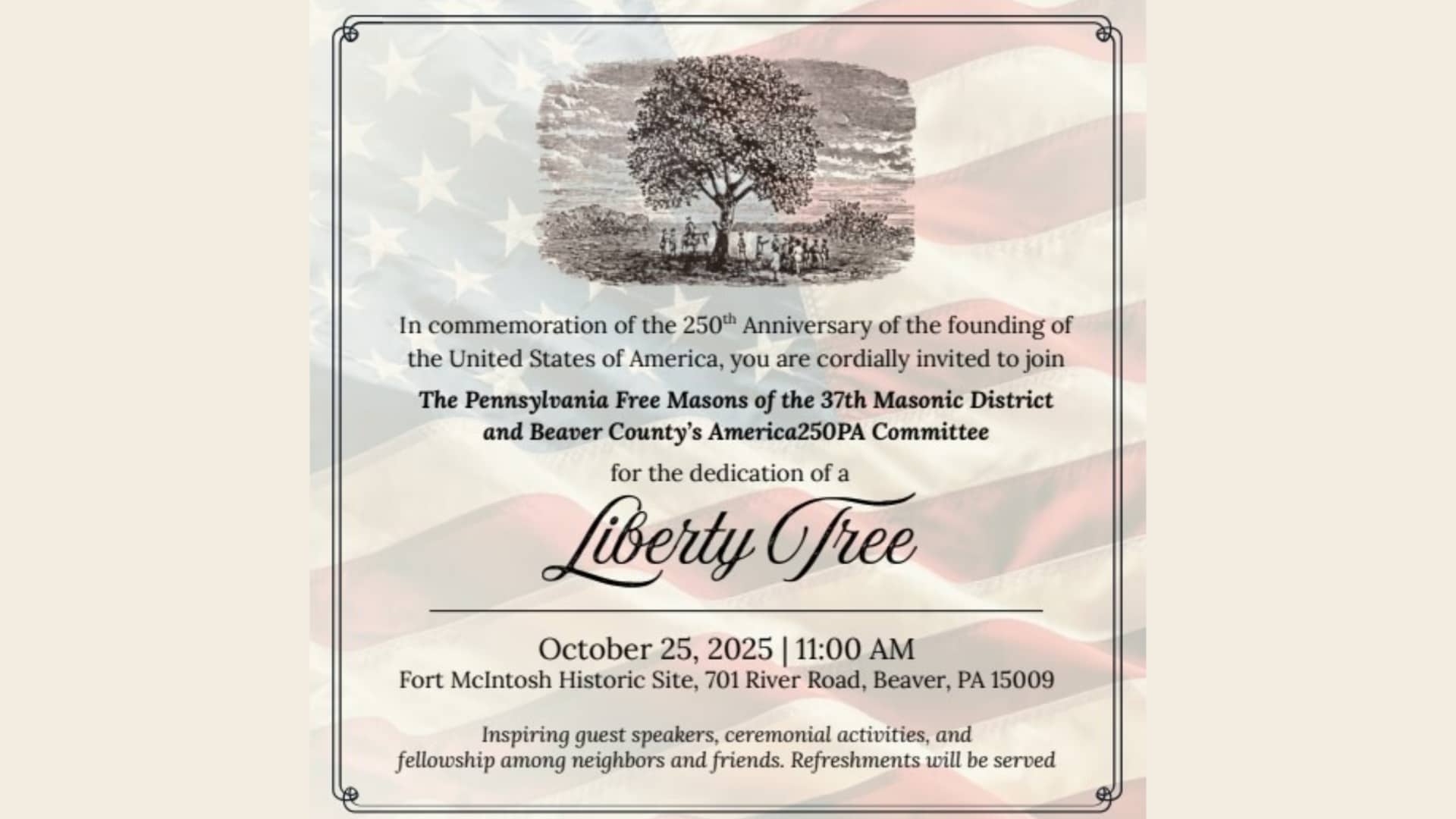 To honor the 250th Anniversary of our nation, Pennsylvania Freemasons and America250PA are planting a Liberty Tree in all 67 counties—and we're dedicating ours on October 25th!