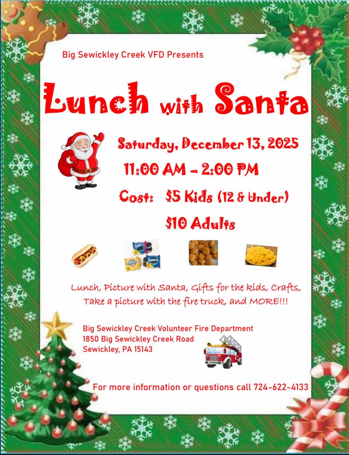 Lunch, picture with Santa, gifts for the kids, crafts and more!
