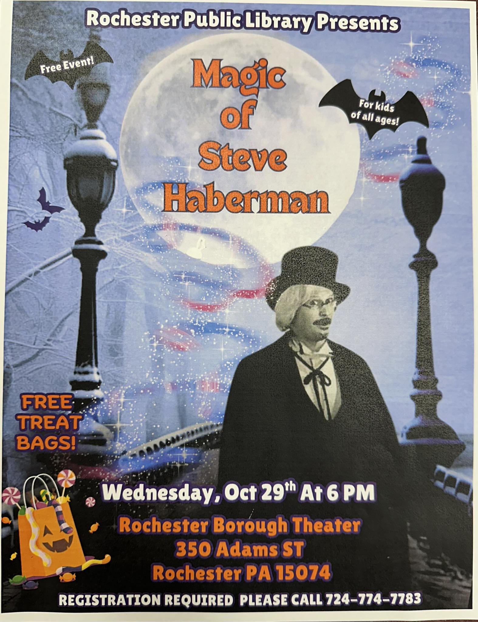 Download Official Event FlyerFREE event for kids of all ages but registration is required at 724-774-7783. FREE treat bags.