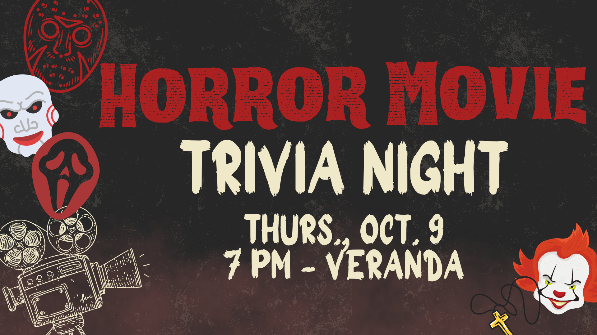 Come test your knowledge on classic horror movies! Come by yourself, or bring a small team! Trivia will be held outside at 7 PM on our pet-friendly Veranda.