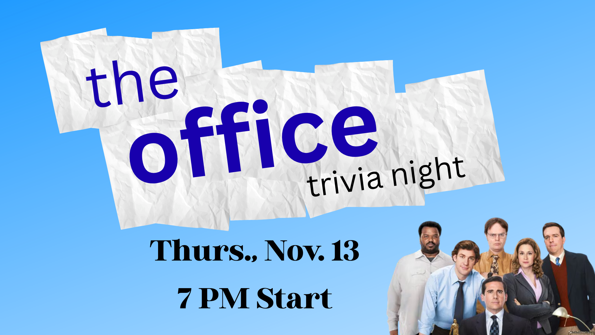 Come test your knowledge on the American tv show, "The Office"! Come by yourself, or bring a small team! Enjoy food from our kitchen and themed drinks! Trivia will be held at 7 PM. The location is weather dependent. Keep an eye on our social medias for location updates as the date comes closer.