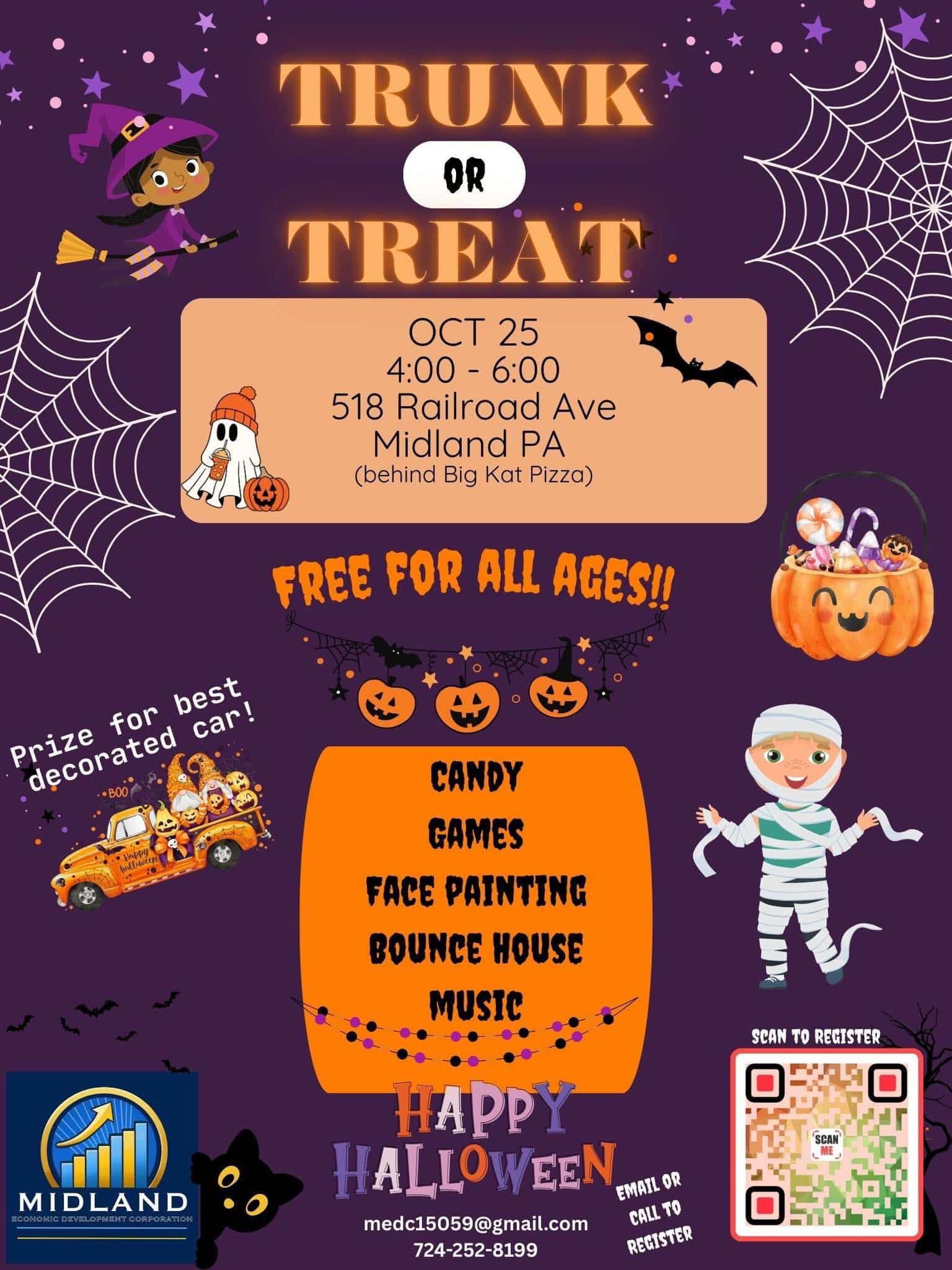 Download Official Event FlyerThe Midland Economic Development Corporation - MEDC and Mayor Angela Poobie Adkins is hosting our Trunk or Treat. Please make sure you register your child and or your vehicle. We are looking forward to seeing all the kids come out.