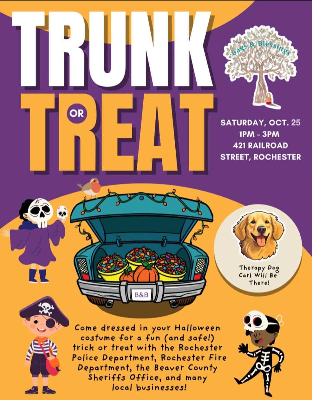 Come dressed in your Halloween costume for a fun (and safe!) Trick or Treat with the Rochester Police Department, Rochester Fire Department, Beaver County Sheriff's Office and many local businesses!