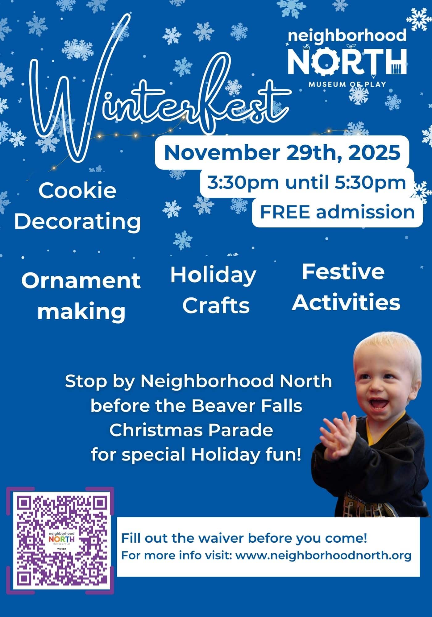 Stop by Neighborhood North on Friday, November 29th from 3:30–5:30 PM before the Beaver Falls Christmas Parade for some special holiday fun!